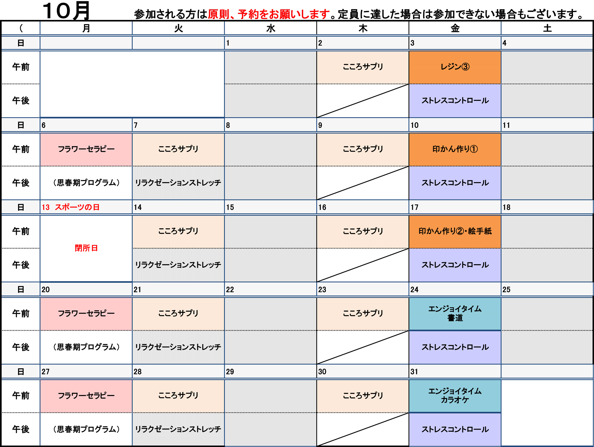 デイケア10月度プログラム